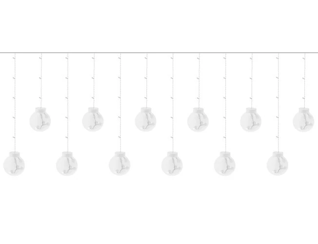 A gömblámpák nem csak karácsonyi dekorációra alkalmasak, pl. Ideális otthona díszítésére és a klimatikus háttérhez a fényképkészítésnél. A lámpák 12 függő golyóból állnak. Ez minden dekorációnak jellegét és varázsát adja. Így a dekorációt felakaszthatjuk egy polcra a mennyezetre vagy bármely más tetszés szerinti helyre. A lámpákat elektromos áram táplálja, így nem kell aggódnia az elemcsere miatt. A fényes dekoráció bármilyen szokatlan helyet és felületet díszíthet. A szokatlan dizájnt praktikus kivitelezéssel ötvözték.