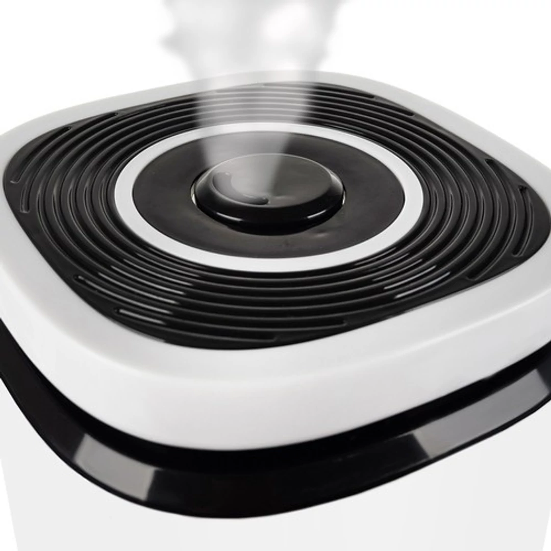 - CSENDES MŰKÖDÉS - az ultrahangos párásító másodpercenként egymilliószoros frekvenciájú jelet bocsát ki. A levegő párásító a lehető legalacsonyabb zajt generálja, így nem zavaró a háztartás tagjai számára - különösen alkalmas lehet a gyermekek számára, akiknek az alvás nem okoz gondot. A párásító nem fogja zavarni a napi tevékenységeket vagy a munkát. Egész éjjel bekapcsolva maradhat minden probléma nélkül, és nem zavarja az alvást, éppen ellenkezőleg - javíthatja annak minőségét, és a felhasználó pihentebb lehet, a pára segíthet ellazulni és minimalizálhatja a nap folyamán felhalmozódott stresszt. A készülék rendelkezik éjszakai fény üzemmóddal, bekapcsoláskor a párásító kék fénnyel világít.