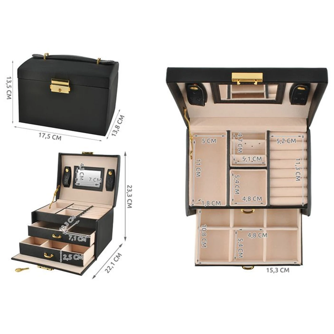 Az ékszertartó 20 különböző rekesszel, fiókkal rendelkezik, melyben kényelmesen és sérülésmentesen lehet elhelyezni különböző ékszereket. A kulcsnak biztonságos biztonságban tudhatja a tartalmat.