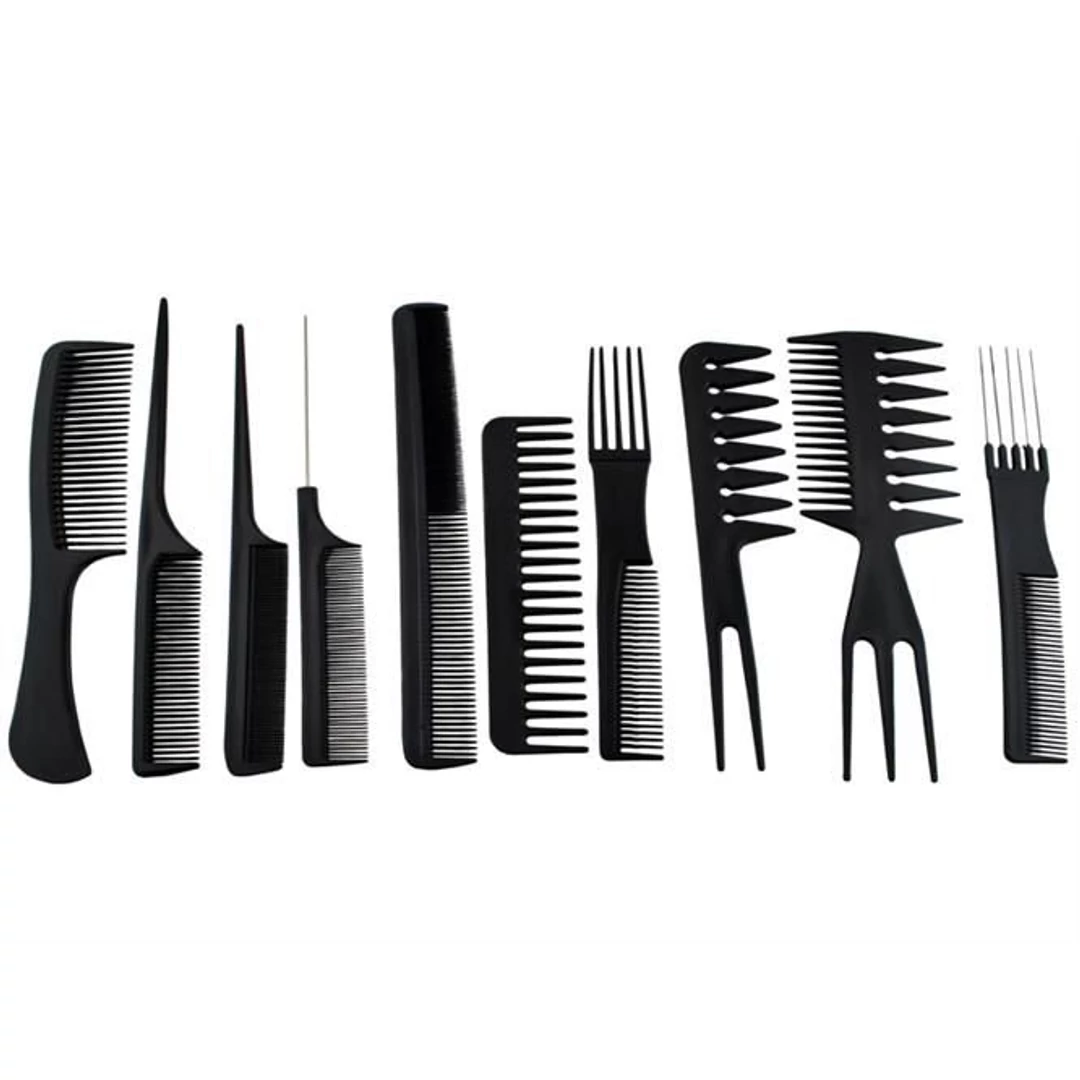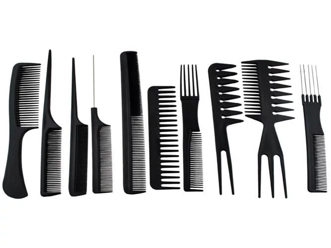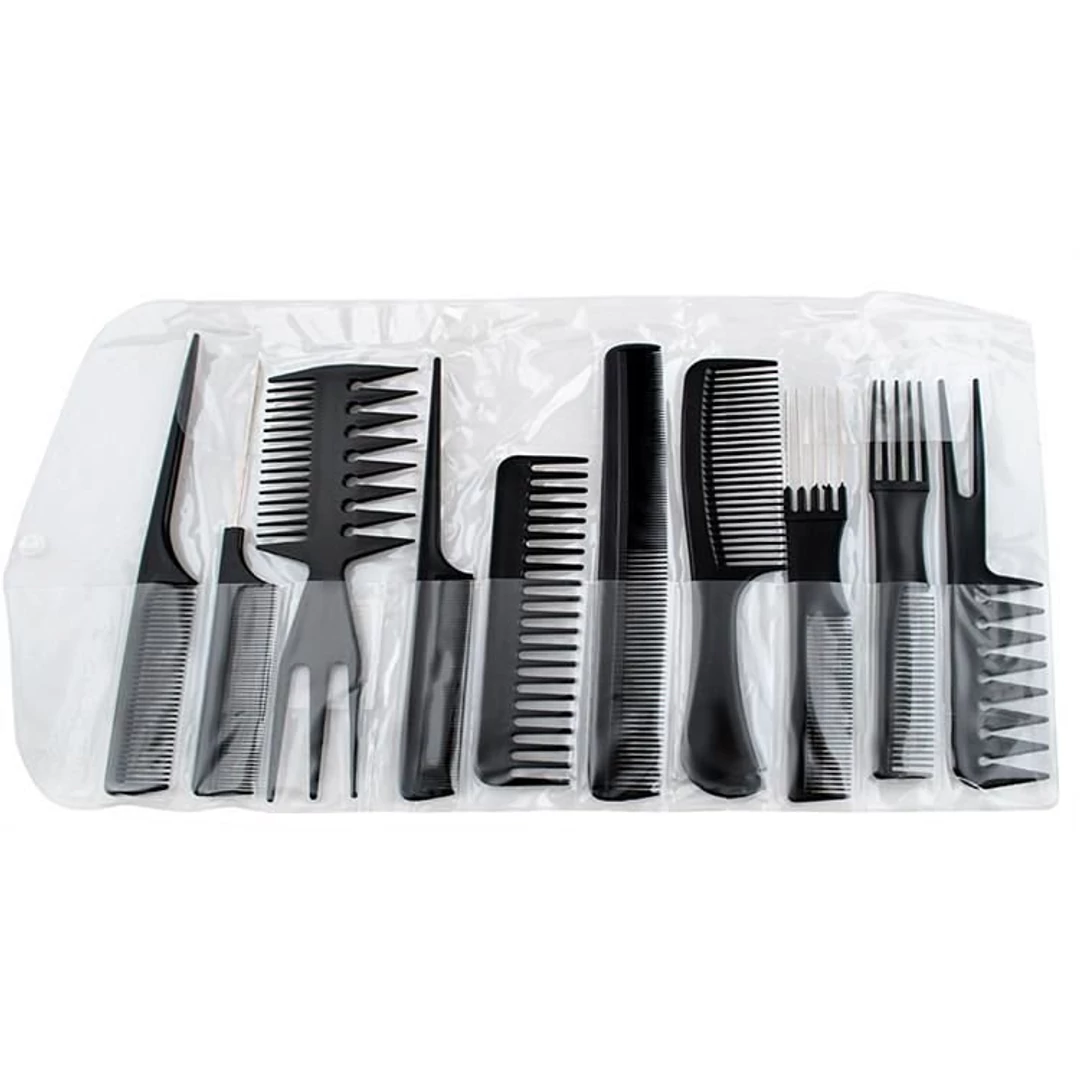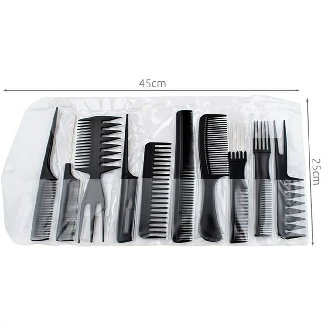 Szettünk minden típusú fésűt tartalmaz, amelyek szükségesek a mindennapi használatra, ez mind magán, mind professzionális használatra használható. 10 fésűnk praktikus átlátszó tasakban van elhelyezve, az egyes elemek megtalálják a helyüket a kiválasztott rekeszekben.