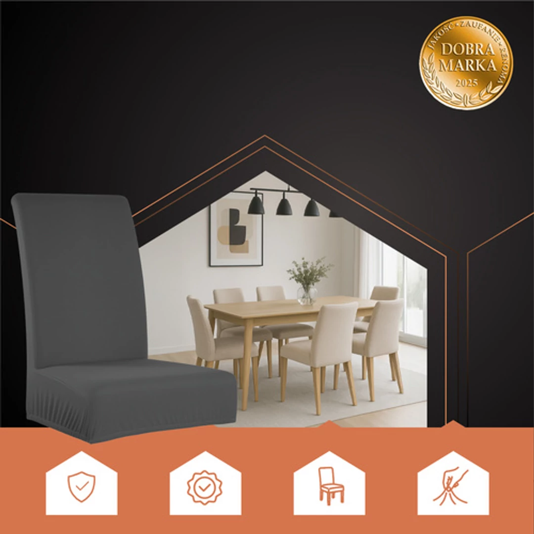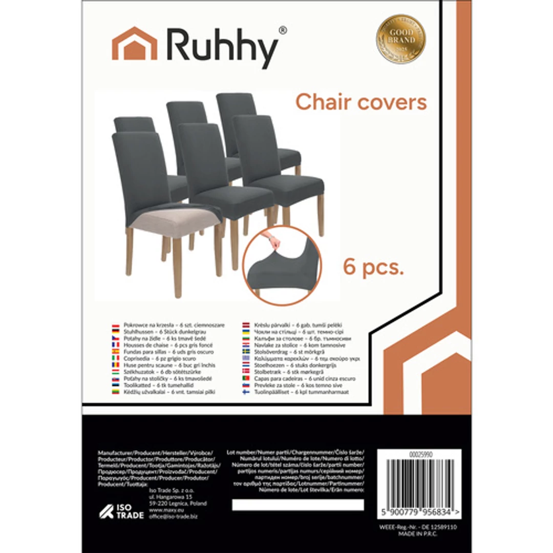 RUHHY székhuzat-szett (6 db) – univerzális, sötétszürke rugalmas bársony 65x40x35 cm